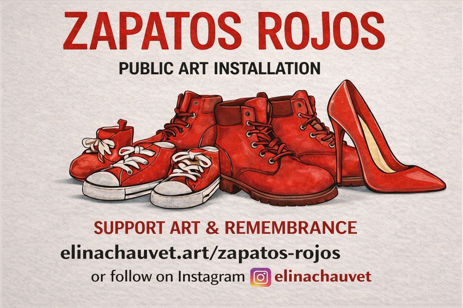 The Zapatos Rojos (Red Shoes) project a visual Art installation by Artist Elina Chauvet her work resonates deeply with our mission, and we believe its visual impact would provide a profound space for reflection and advocacy in our community.